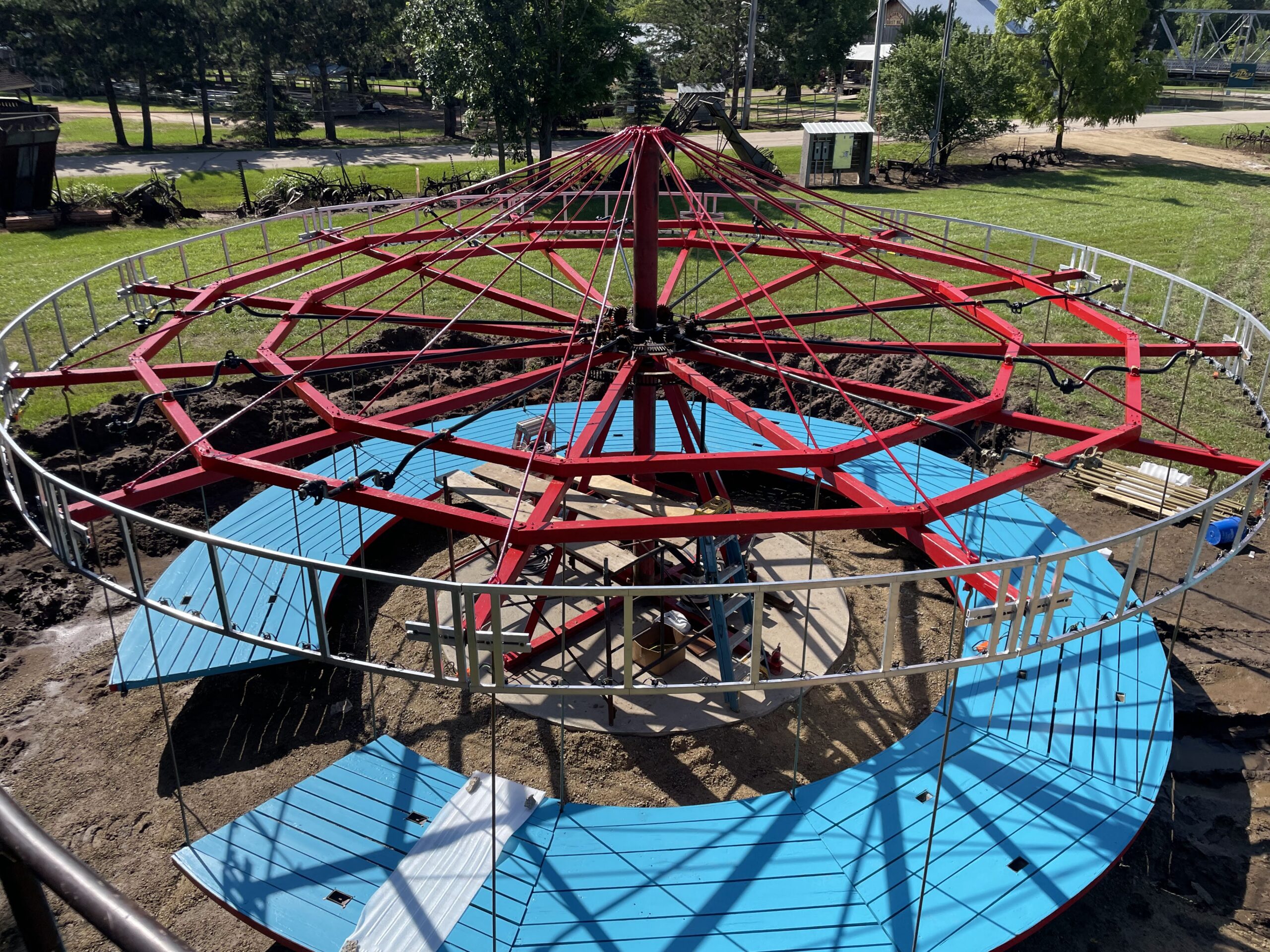 After a long winter of restoration, the assembly began! The foundation was poured, and the framework was set. Then, as the show approached, the horses were aligned, and Andy began planning the big reveal!