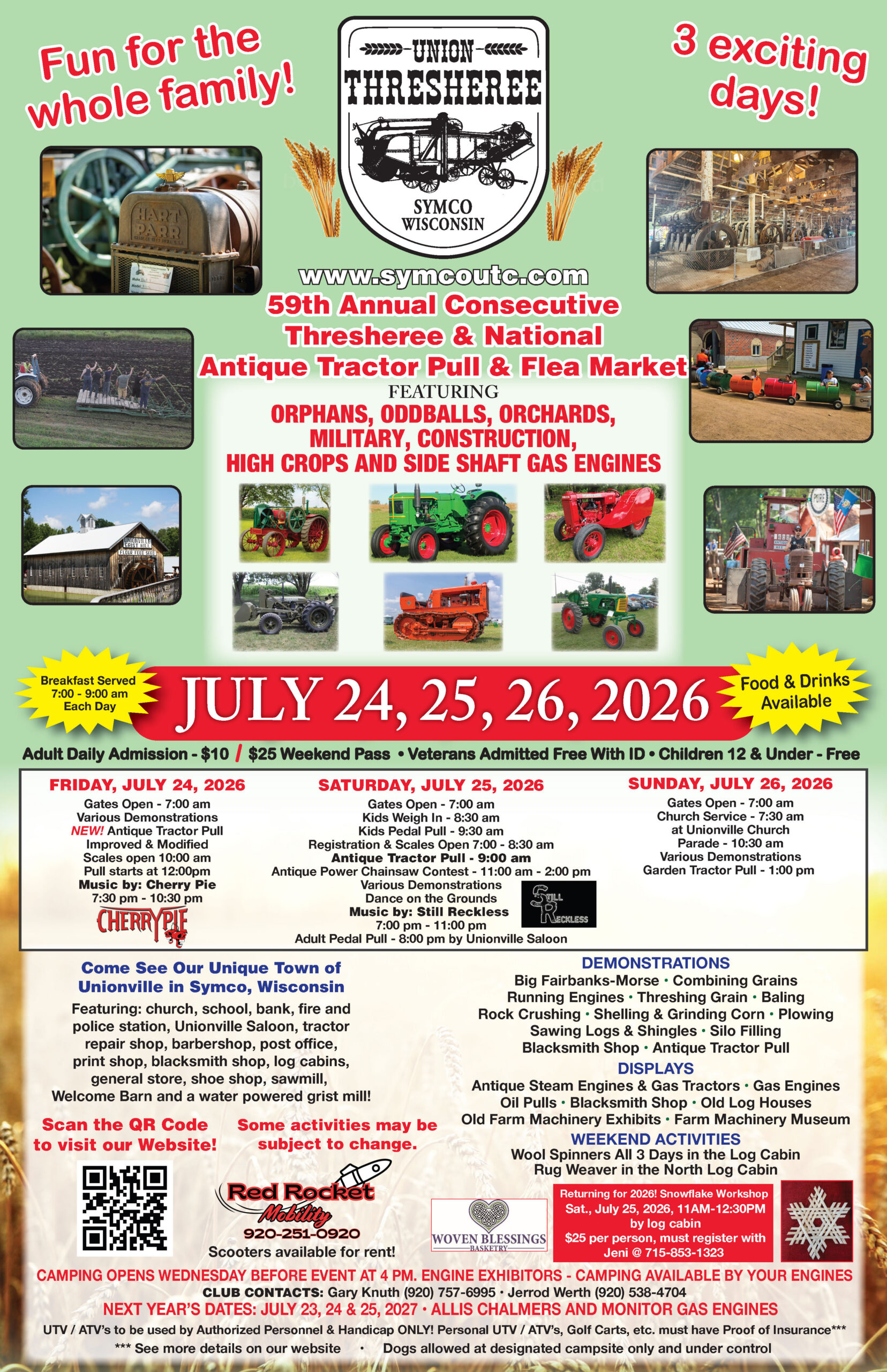 We’re incredibly grateful to all our sponsors for helping make the Union Thresheree possible. Your generosity keeps Wisconsin’s agricultural heritage alive and brings the Thresheree to life for generations to enjoy.